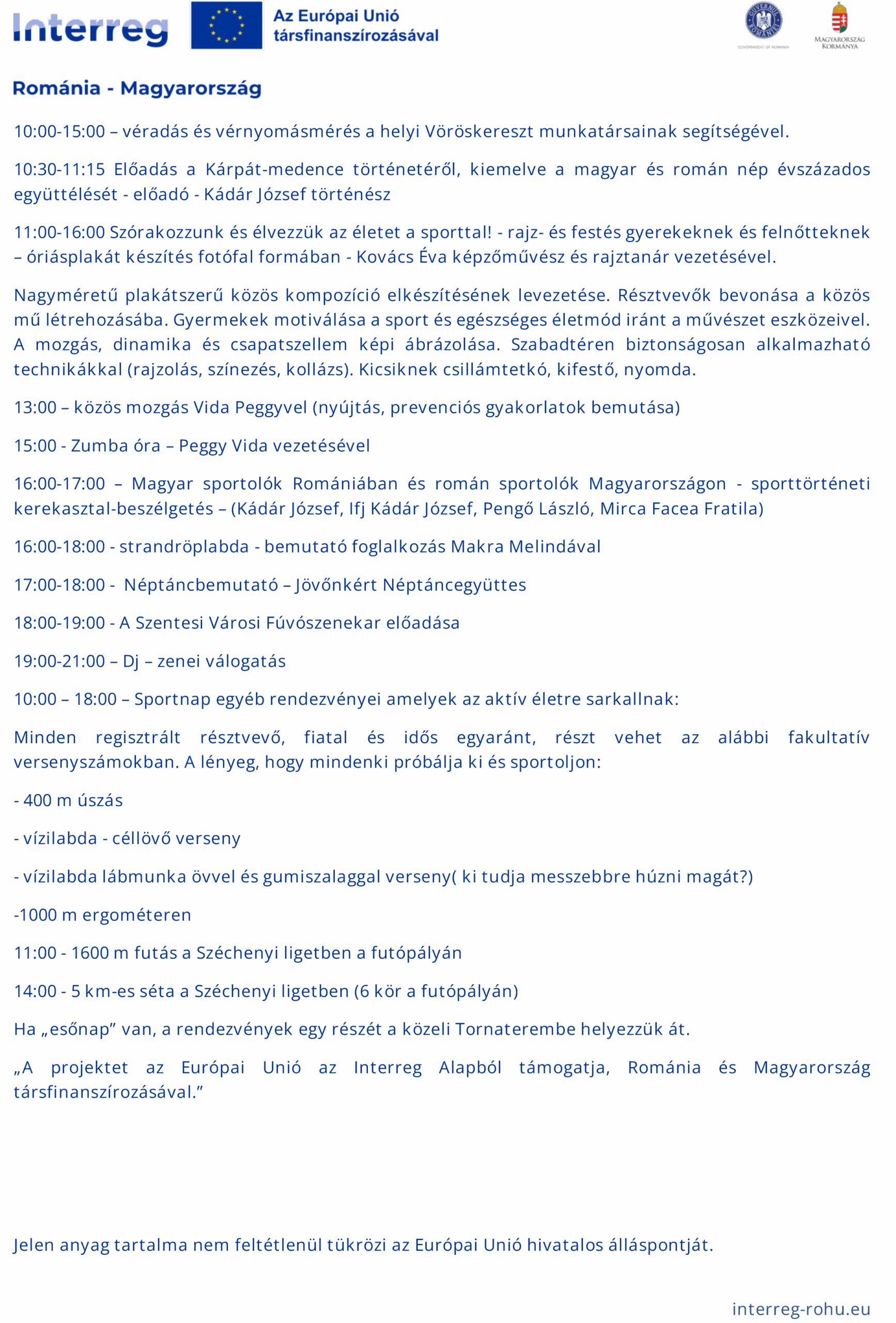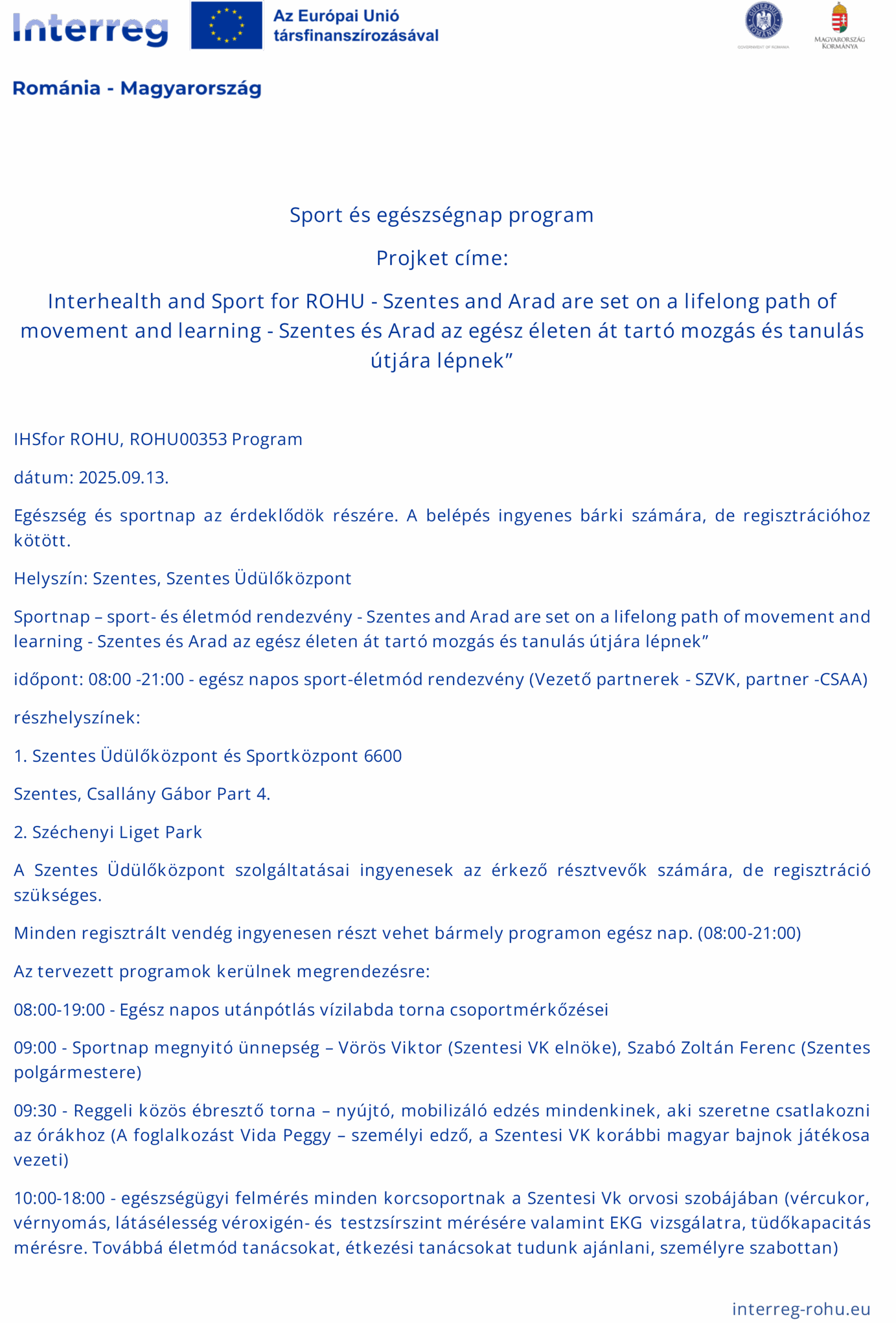 Interhealth and Sport for ROHU - Szentes és Arad egy életen át tartó mozgás és tanulás útjára lépnek - Szentes és Arad az egész életen át tartó mozgás és tanulás útjára lépnek"
